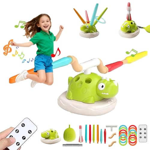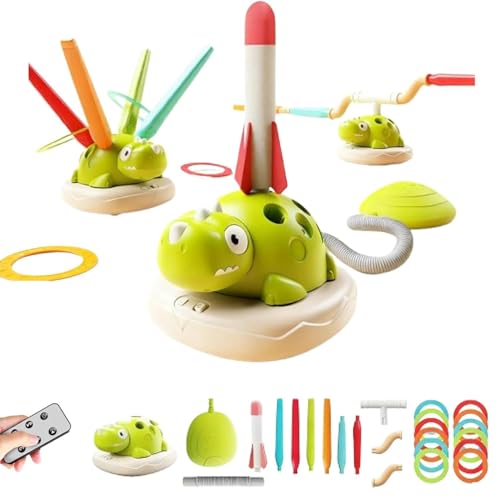 3 in 1 Dinosaur Rocket Launcher, Spinning Dinosaur Jump Toy with Remote Control, Ring Toss & Musical Jumping Toy, Indoor Outdoor Games Sports & Outside Play, Christmas & Birthday Gift(1PC)