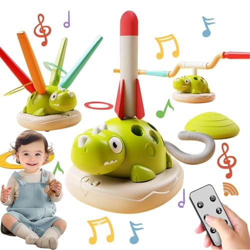 3-in-1 Dinosaur Rocket Launcher, Ring Toss Game, and Musical Jumping Toy; Spinning Dinosaur Jumping Toy with Remote Control, Suitable for Boys and Girls