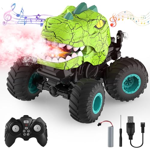 Kssvzz Dinosaur Remote Control Monster Truck - Dinosaur Toys for 3 4 5 6 7 8 Year Old Boys, 2.4Ghz RC 360°Rotating Off-Road Stunt Car with Spray, Light & Sound, for Kids Boys Age 3-5 6-7 8-12