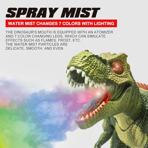Peufcmi Dinosaur Remote Control, Dinosaur Robot, Walking Animal with Lights and Spray for Backyard Travel Indoor Kindergarten Birthday Home Classroom Boy Girl
