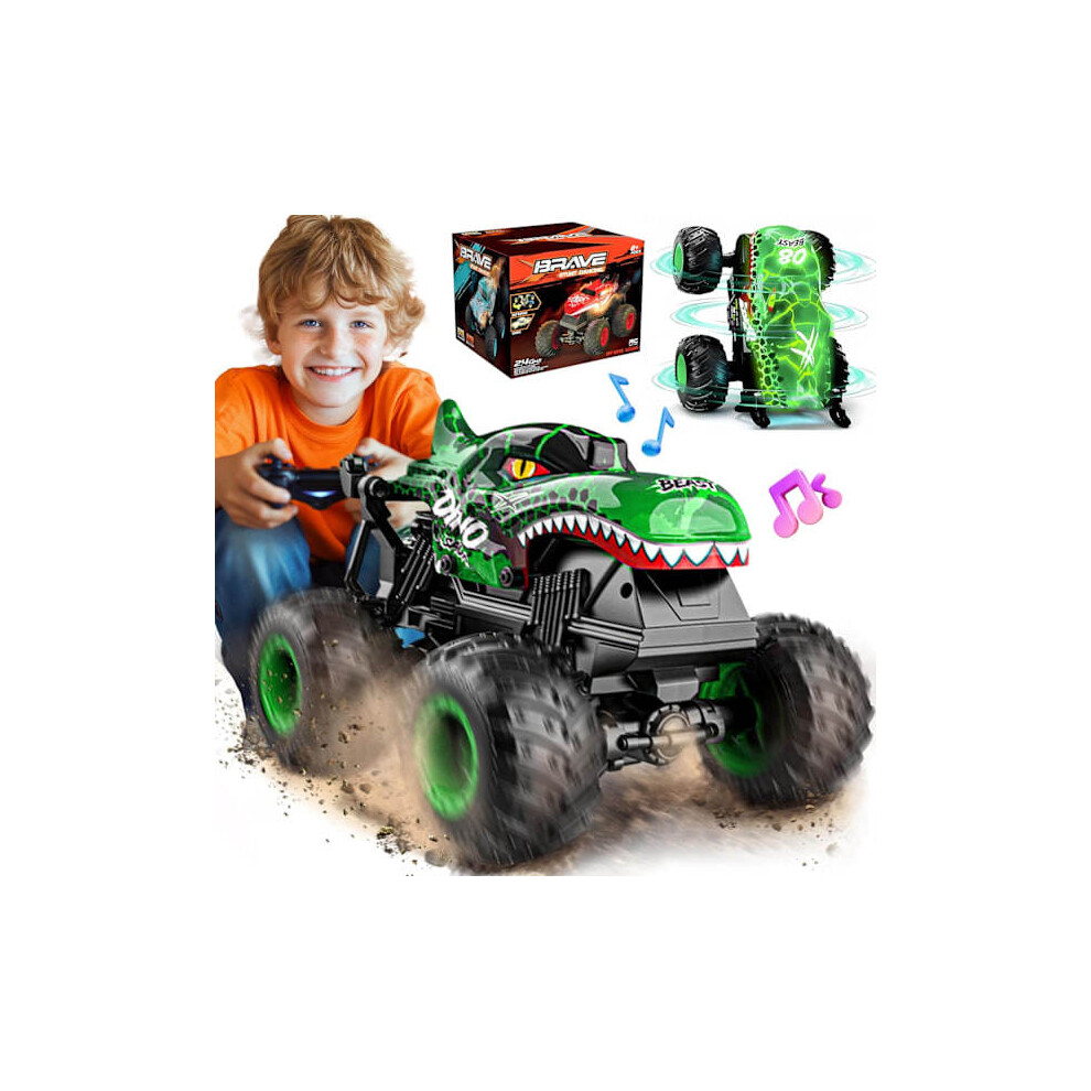/HH/ 2.4GHz RC Monster Truck Toy for Boys, 1:20 Dinosaur Remote Control Car with Lights & Music, Stunt Truck 360 Spinning Green