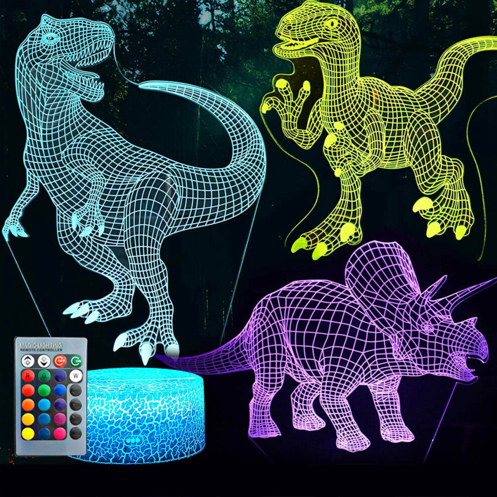 3D Dinosaur Night Light with Remote, 3 Patterns & 7 Colors â Compatible with Kids' Rooms, Bars; Best Gift for Boys & Girls