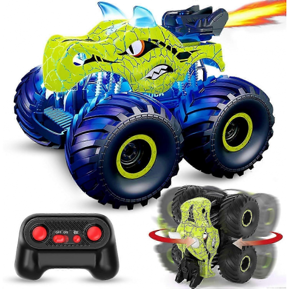 Dinosaur Remote Control Cars, 360° Rotating Remote Control Monster Truck with Spray Roar LED Lights, RC Dragon Monster Truck Car Boys Toys Age 3-12, Christmas Birthday Toy Gifts for Kids (Green)