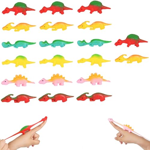Ainiv 20PCS Slingshot Dinosaur Finger Toys, Rubber Stretchy Slingshot Dinosaurs, Dinosaur Finger Slingshots Christmas Stocking Fillers, Fun Stretchy Flick Dinosaur Slingshot Toy for Girls Boys Age3+