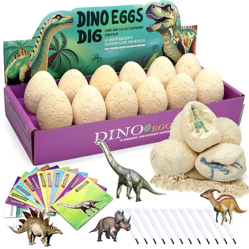 Dinosaur Eggs Excavation Dig Kit - Dino Eggs with 12 Dinosaurs Inside, Dinosaur Toys for Kids, Birthday, Easter for Boys & Girls Ages 3-12.
