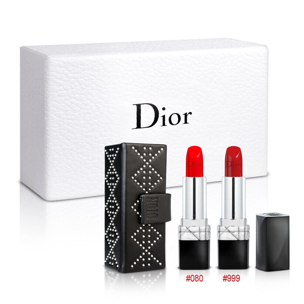 Dior Couture Colour Lipstick Comfort & Wear 999 And 080 Red Smile Lipstick Case