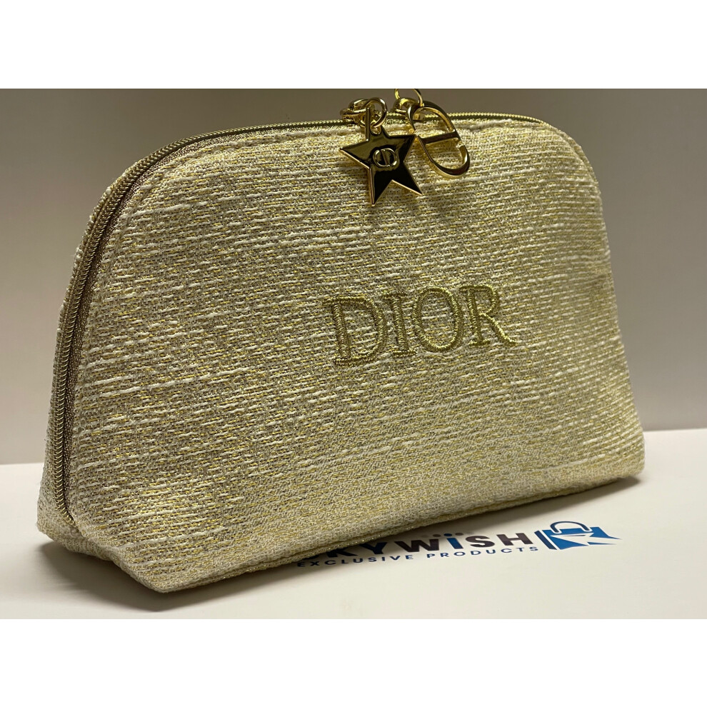 NEW DIOR Beauty Gold & Cream Make-up & Cosmetics Bag, Pouch w/Zip