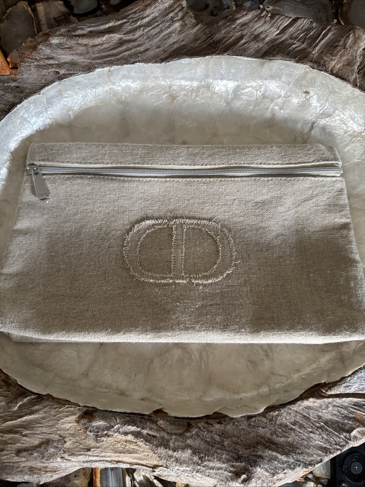 Dior Makeup/Wash Bag Linen Canvass Rustic Beige With CD Logo NEW