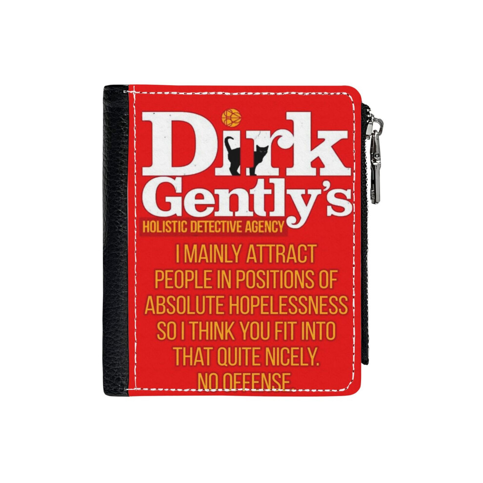 (Dirk Gently - Absolute Hopelessness_34) PU Wallet Compact Bifold with Zipper & Multiple Card Coins Slots Black Stylish Durable Graphic Design Print f