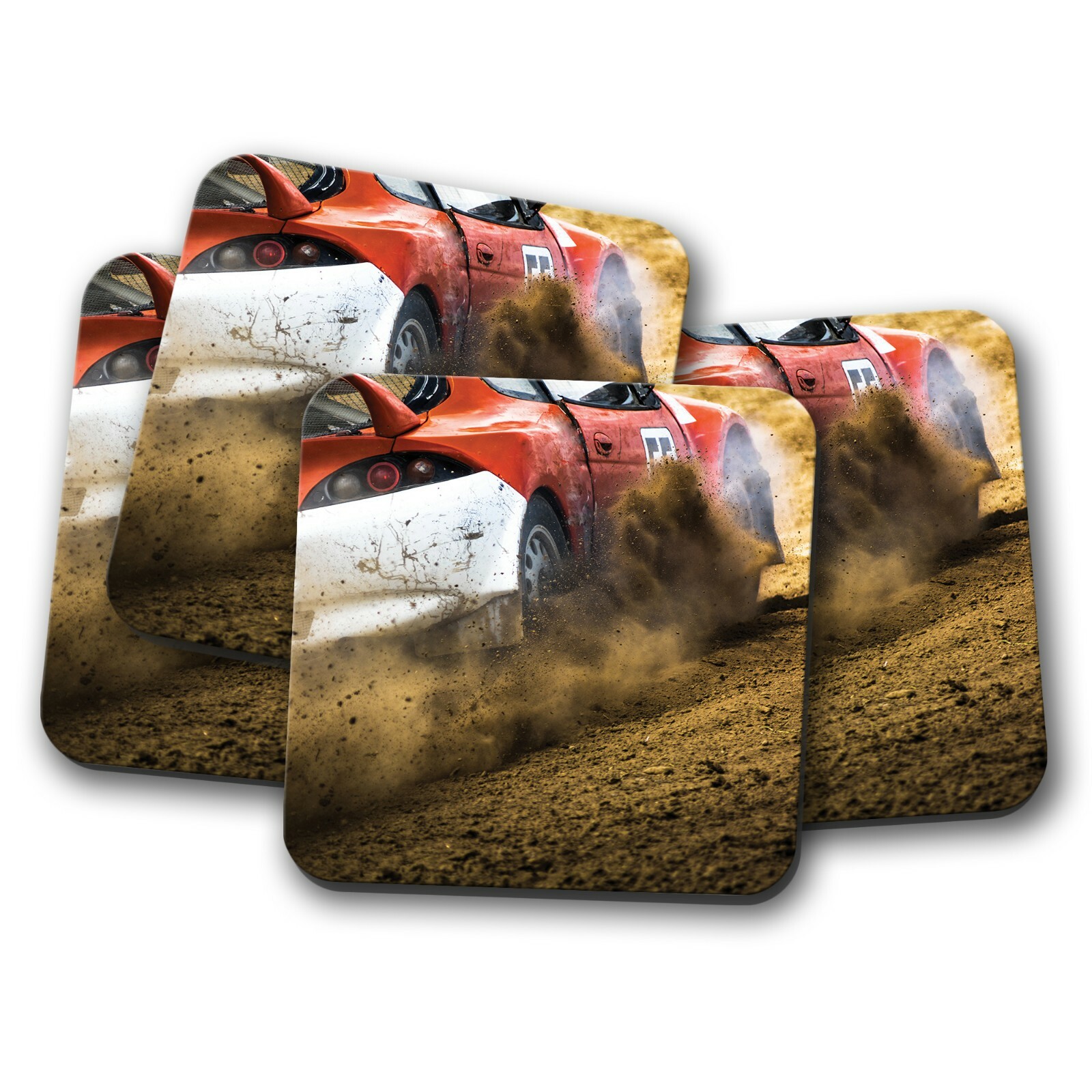 4 Set - Rally Car Race Coaster - Off Road Dirt Racing Drifting Drift Gift #12460