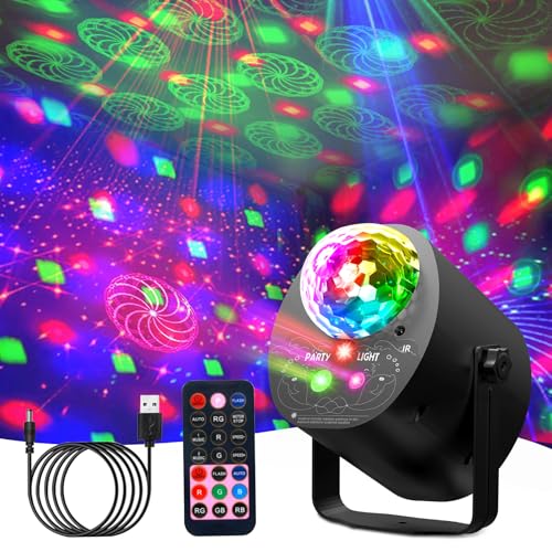 Sound Activated,4 Lens Patterns Show Disco Ball Lights for Birthday Parties,Stage Light, Par Strobe Lights, Holiday Christmas Wedding Event Halloween Karaoke DJ Club Bar Decoration