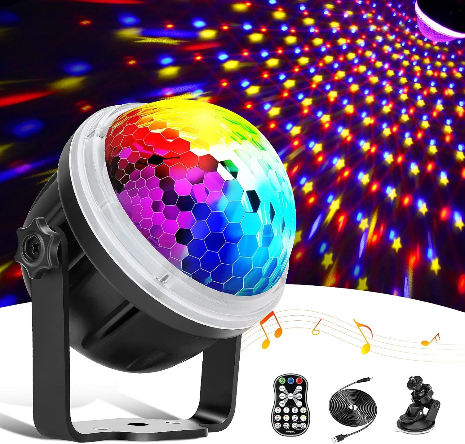 2 in 1 RGB LED Disco Ball DJ Lights Sound Activated Strobe USB for Party Birthda