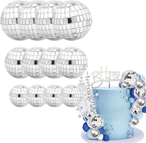 Disco Ball Cake Decorations, 12-Pack Reflective Mini Disco Balls for Party, Wedding, and Home Décor - Shiny, Durable, Multi-Use - Perfect for Birthday Cakes, Dance Floors, and Table Centerpieces