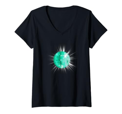 Women's Light Teal Aqua Color Disco Ball Light Teal Aqua V-Neck T-Shirt