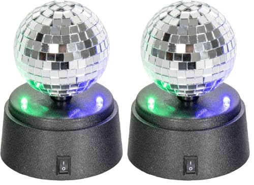 Global Gizmos 45839 Mini Disco Ball/Light-Up Mirror Ball/Efficient LED Lights / 3-Inch Diameter/Perfect for Tabletops, Kids Parties & More, Silver (Pack of 2)