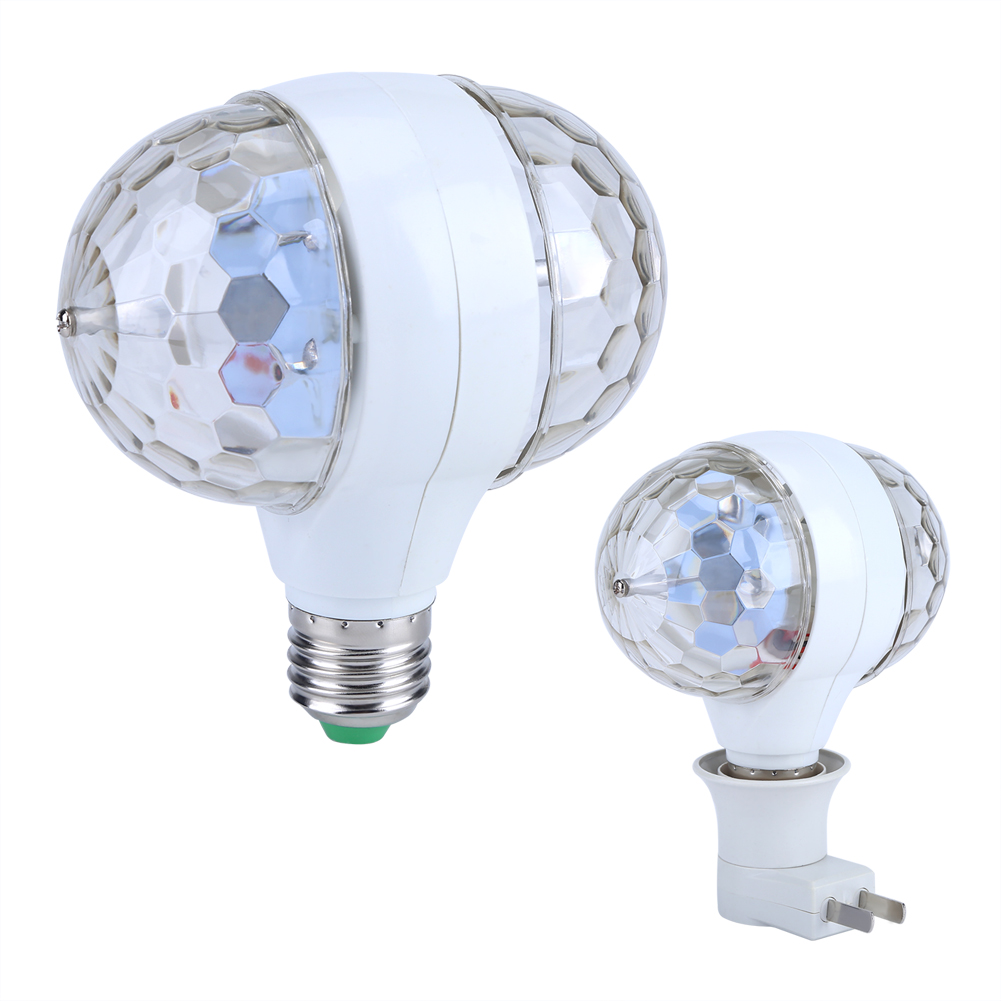 ]E27 RGB LED Disco Stage Lights Ball Bulb 2‑Head Rotating Party Effect Lamp