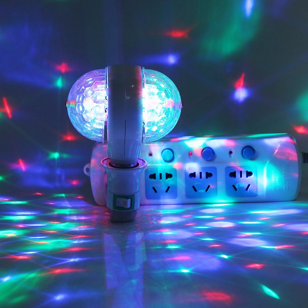 E27 RGB LED Disco Stage Lights Ball Bulb 2‑Head Rotating Party Effect Lamp