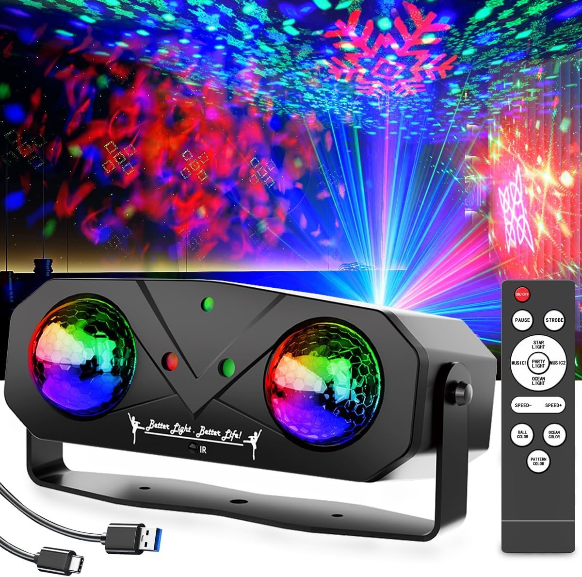 Disco Ball Party Lights With Sound Activated Lights, Star Projection, Ocean Light, and RG Light Pattern - Perfect for DJ, KTV, Club, Dance, Decor, Christmas, Birthday Festival Gifts