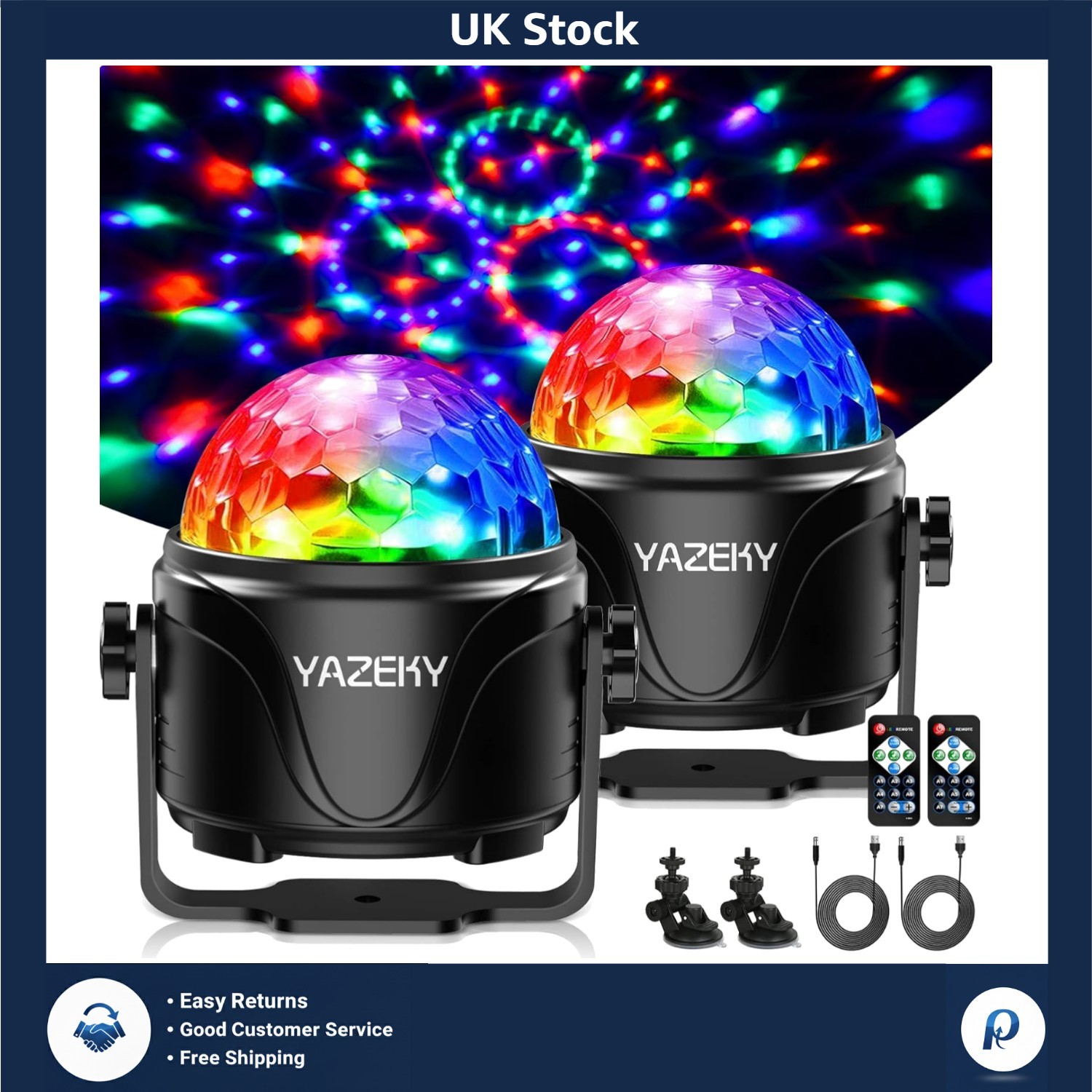 YAZEKY Set of 2 USB Disco Ball Lights for Parties, 360° Rotating DJ 7RGB Light