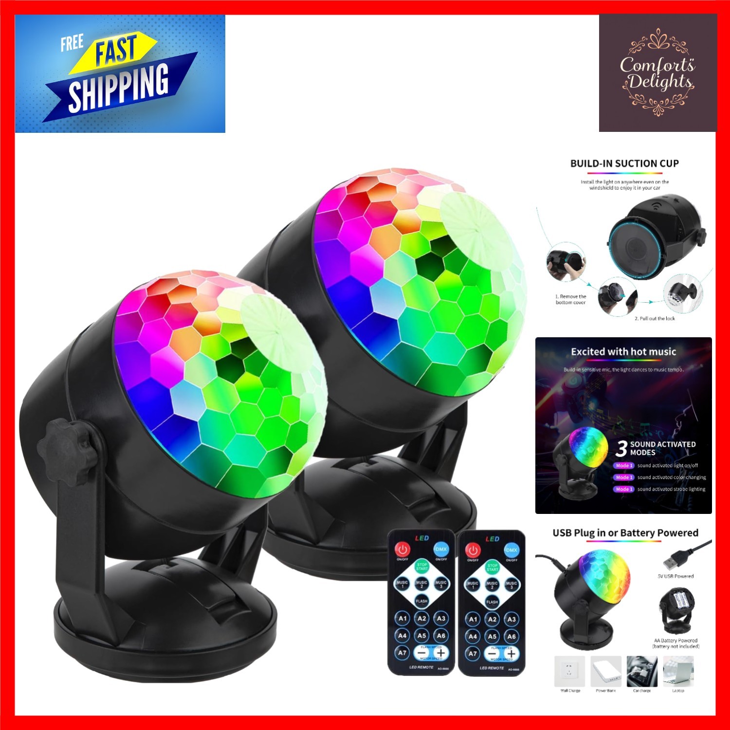 2-Pack Remote-Controlled RGB Disco Ball Lights - Sound Activated Party Magic