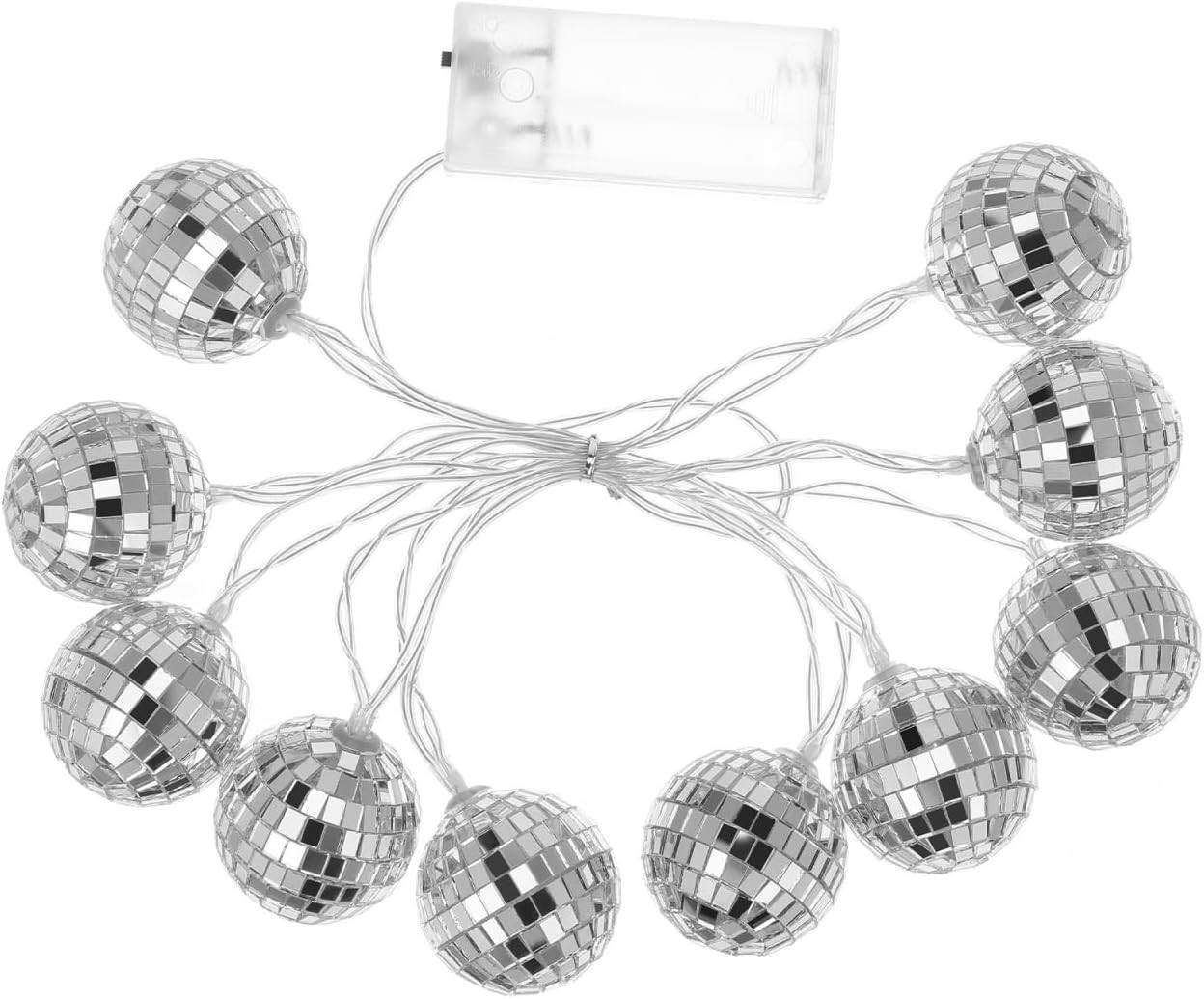 Morofme 10 LED Disco Ball String Lights Silver Hanging Mirror Disco Party Light