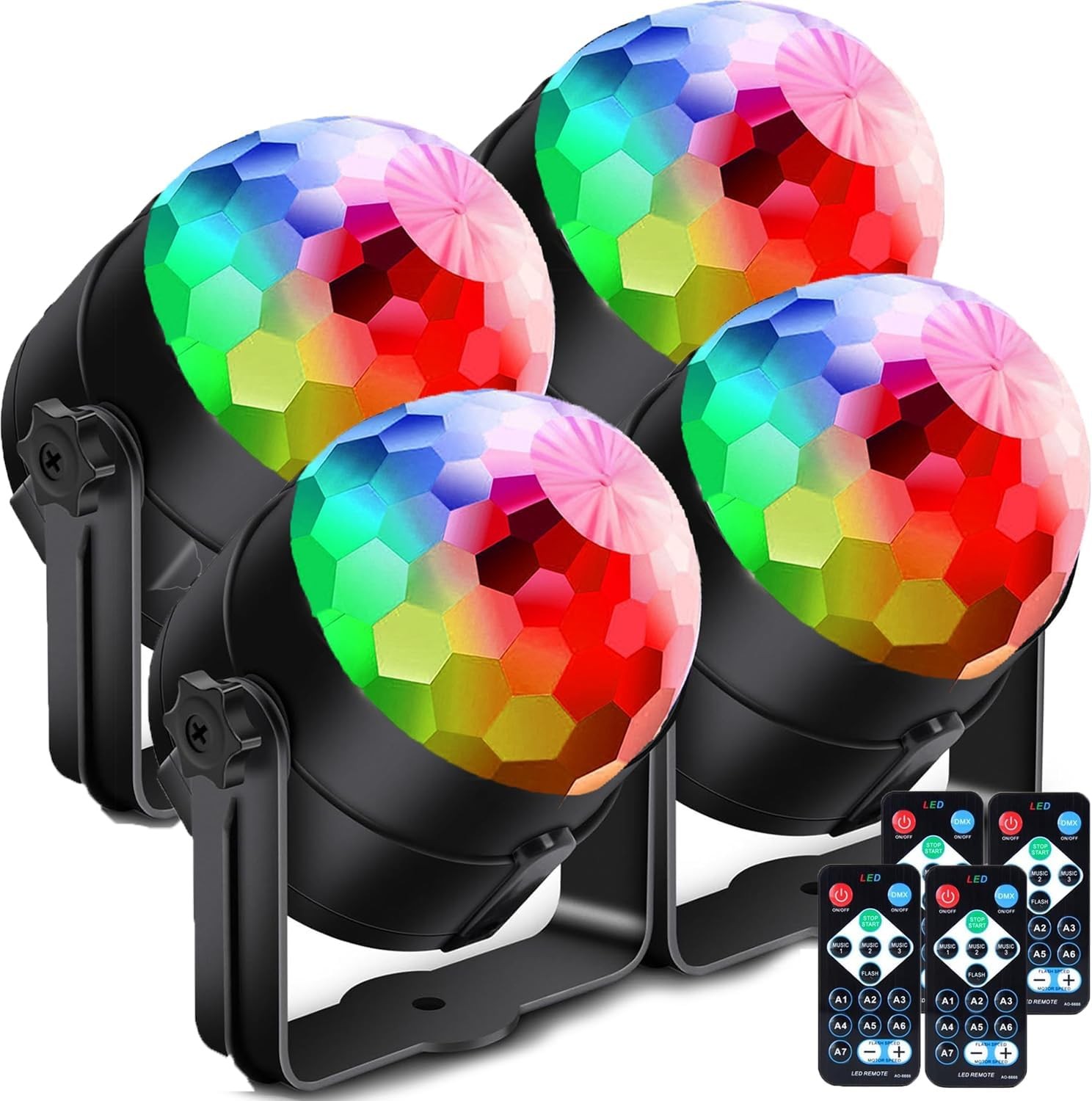 【4 Pack】 360° Rotating Sound-Activated Disco Ball Lights | USB Powered Par