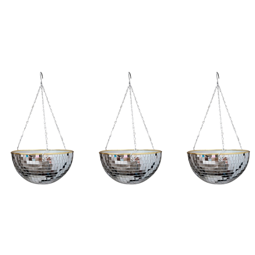 Mirror Disco Ball Hanging Planter Basket Shining Flower Pot Window Plant Holder