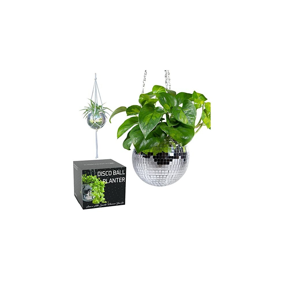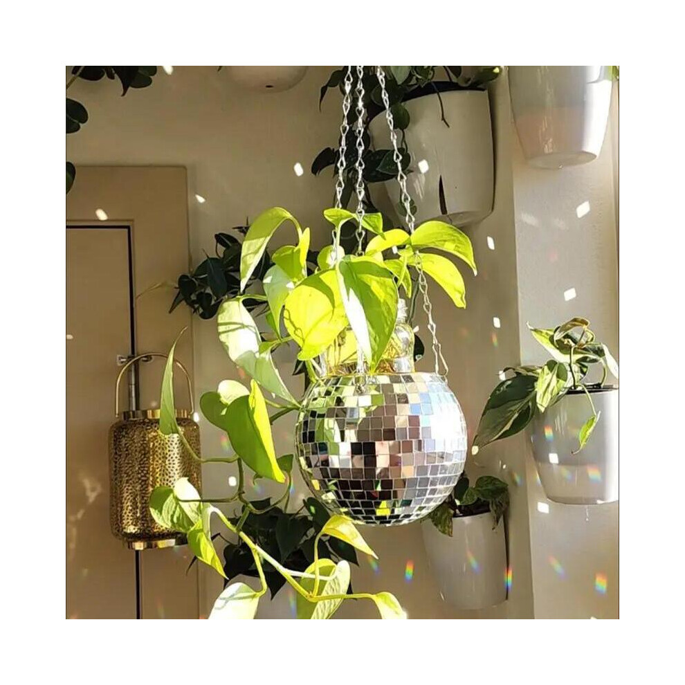 Disco Ball Planter â Disco Ball Plant Hanger, Mirror Disco Glitter Planter with Chain and Macrame Rope, Boho Hanging Planter | Disco Ball Decor â