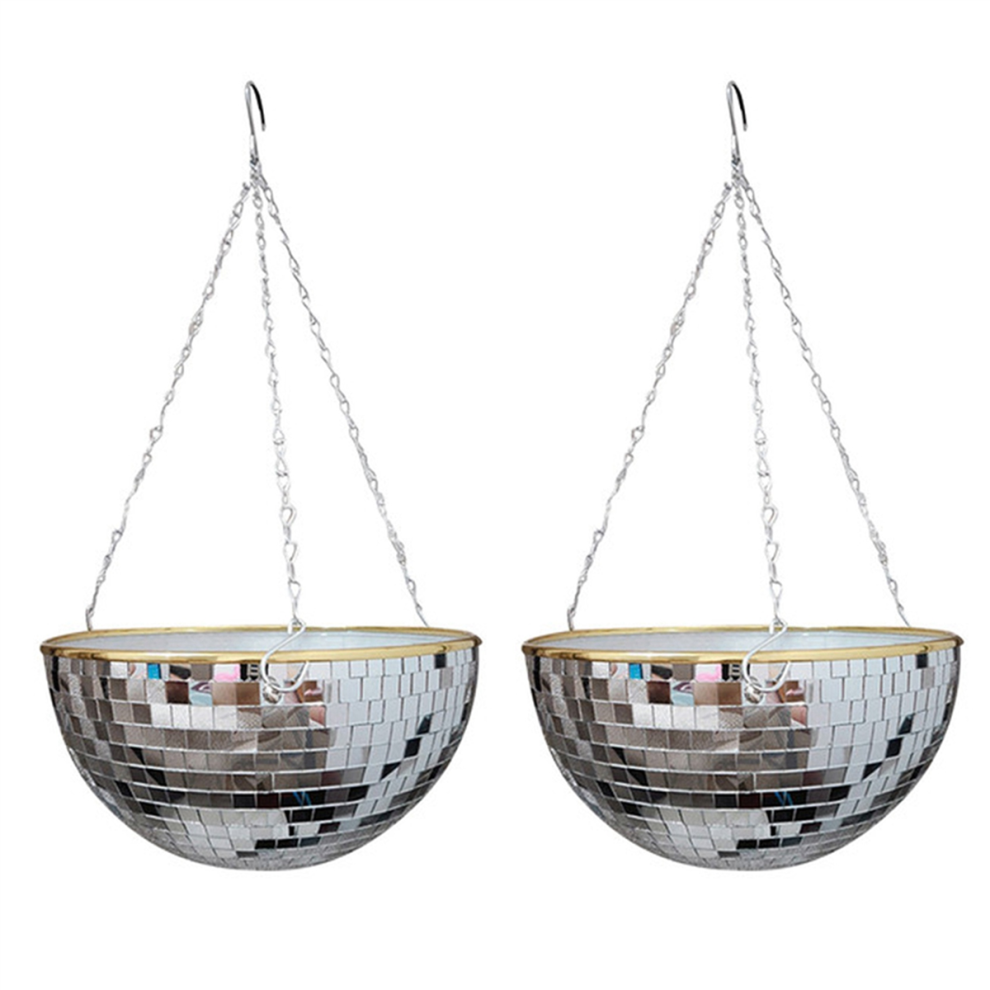 2X Disco Ball Planter Shape Hanging Vase Flower Pots with Drainage Mirror Basket Garden Decoration-XL