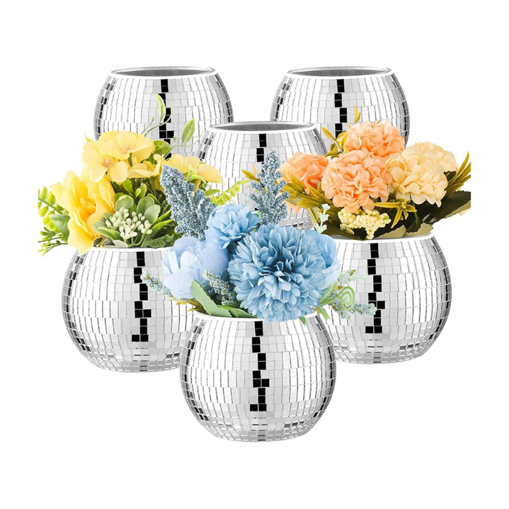 puhae 6 Pcs Disco Ball Vase Disco Ball Planter for Centerpieces Disco Ball Decor Flower Vase with Mirror Glass for Wedding