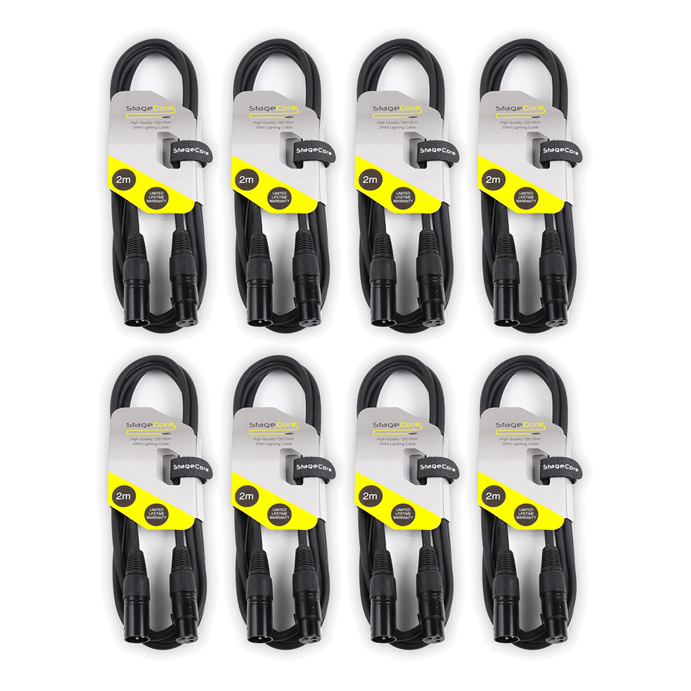 8x StageCore 2M DMX Lead Cable 3P XLR Lighting Disco DJ