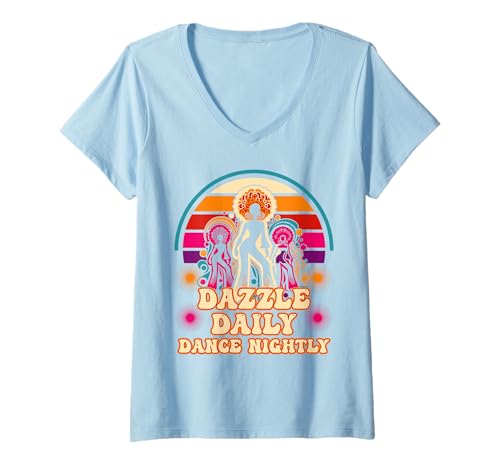 Womens Retro Groovy 70s Disco Afro Soul Music Funky V-Neck T-Shirt