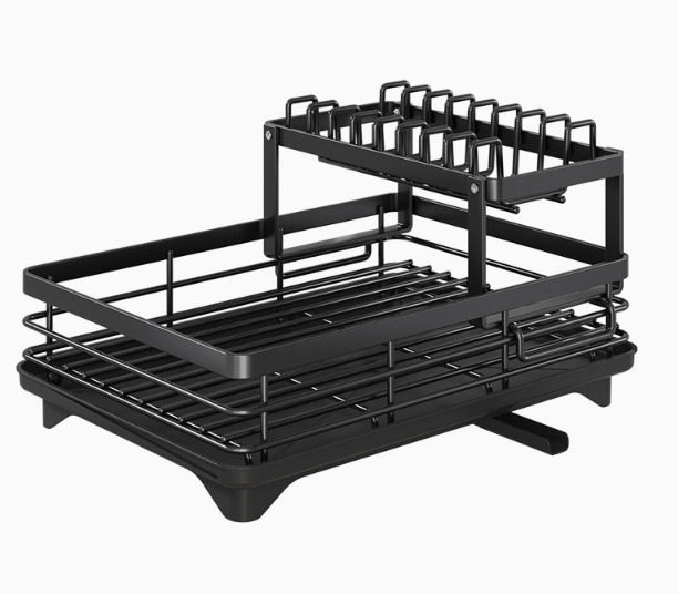 Carbon Steel 2 Tiers Adjustable Large Dish Drying Rack Drainage Over-The-Sink 3-tier