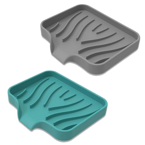 Silicone Soap Dish with Drainage, 2 PCS Self Draining Soap Dishes for Bathroom Portable Showers Bar Soap Case Tray Holder for Shower Kitchen Counter Top (Grey, Green),soap dish with drainage