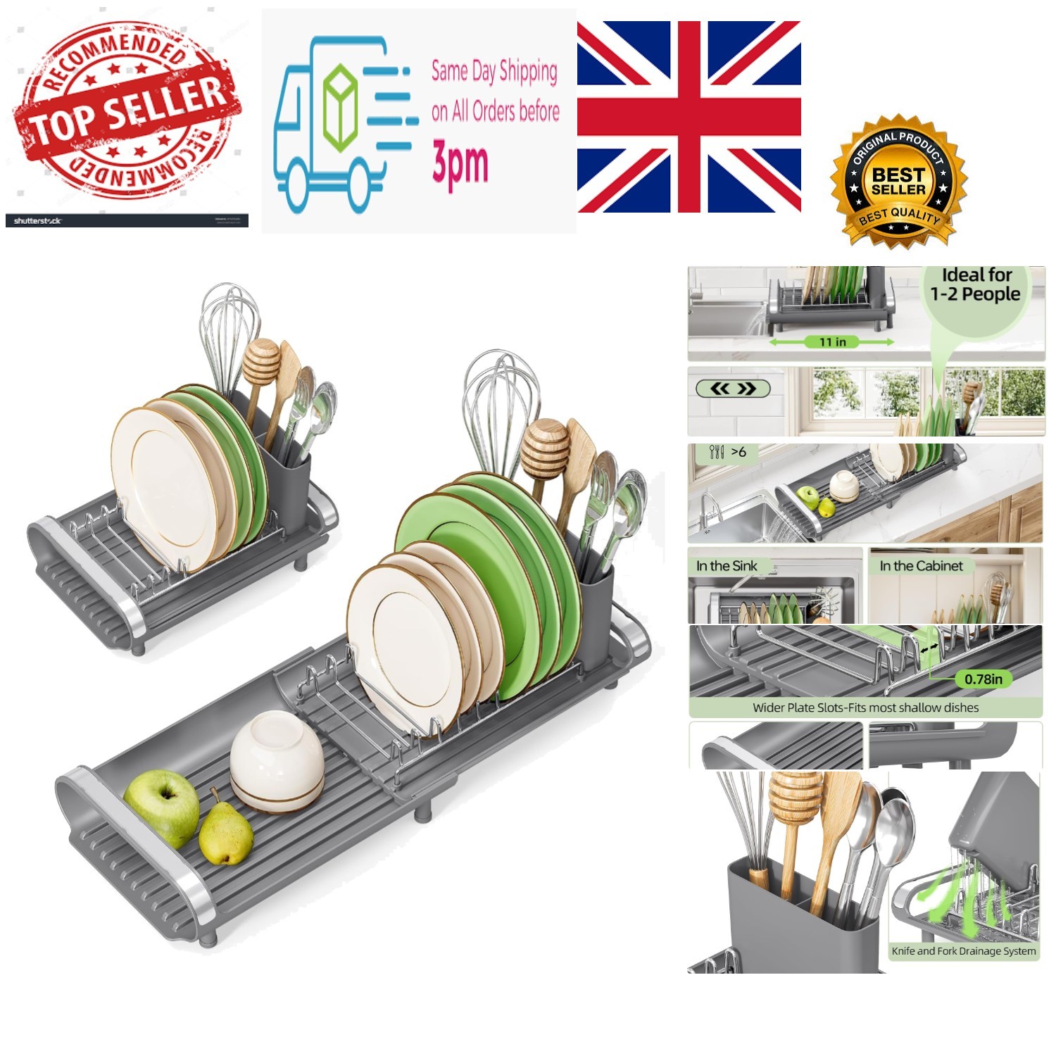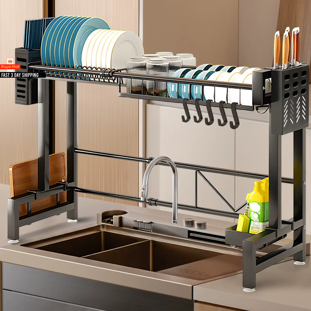 Extendable Dish Drainer Rack Adjustable Stainless Steel Sink Organizer UK