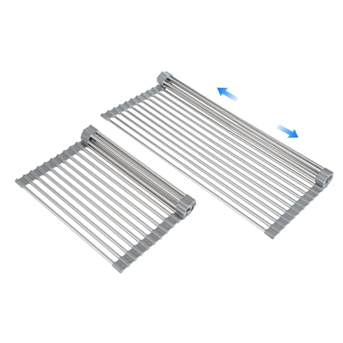 Large Expandable Roll Up Dish Drying Rack, Heat-Resistant Dish Drainer for Stainless Steel Sinks, Over The Sink Non-Slip Silicone Rollable Dish Drainer Roll Rack 18 tube