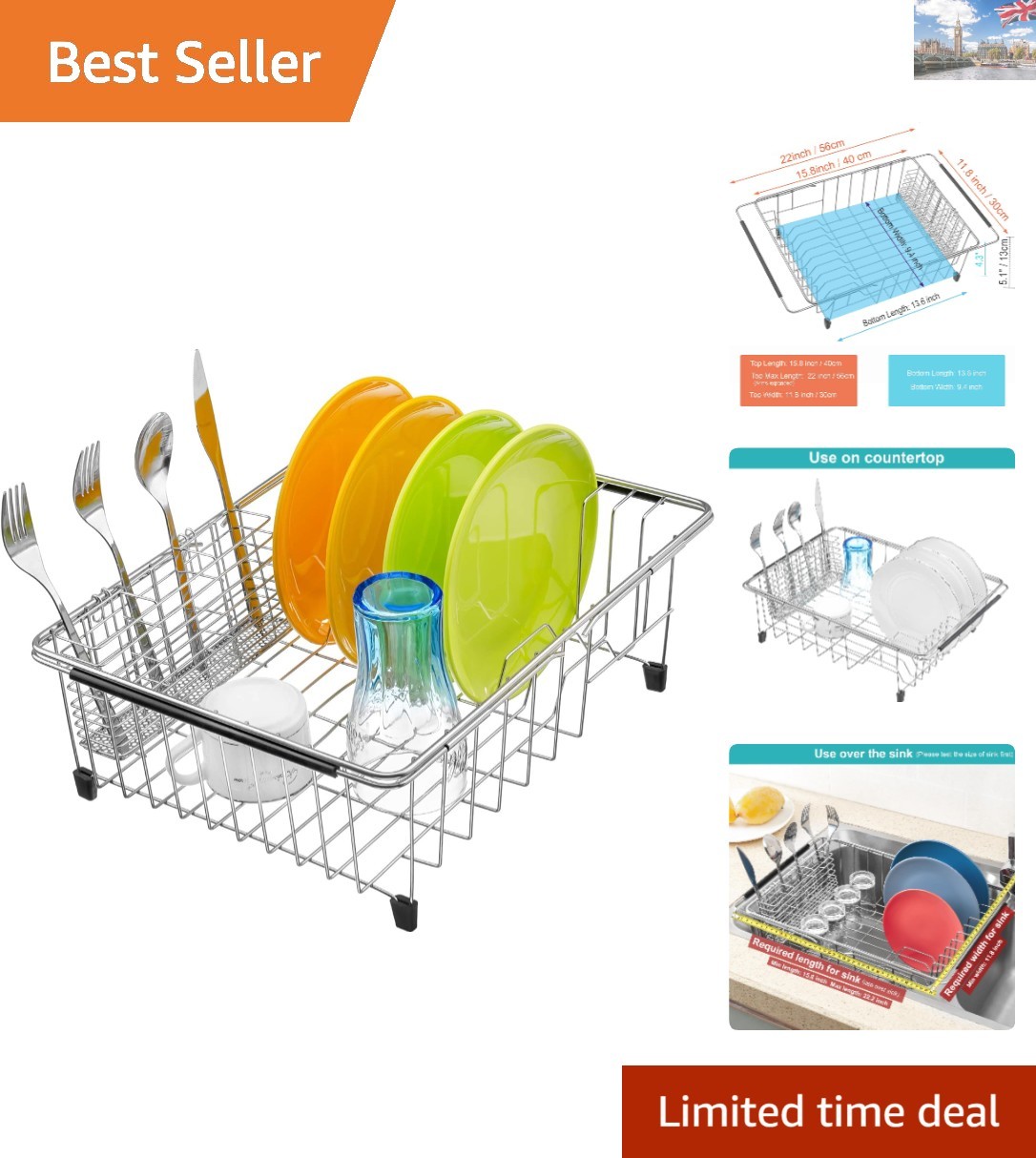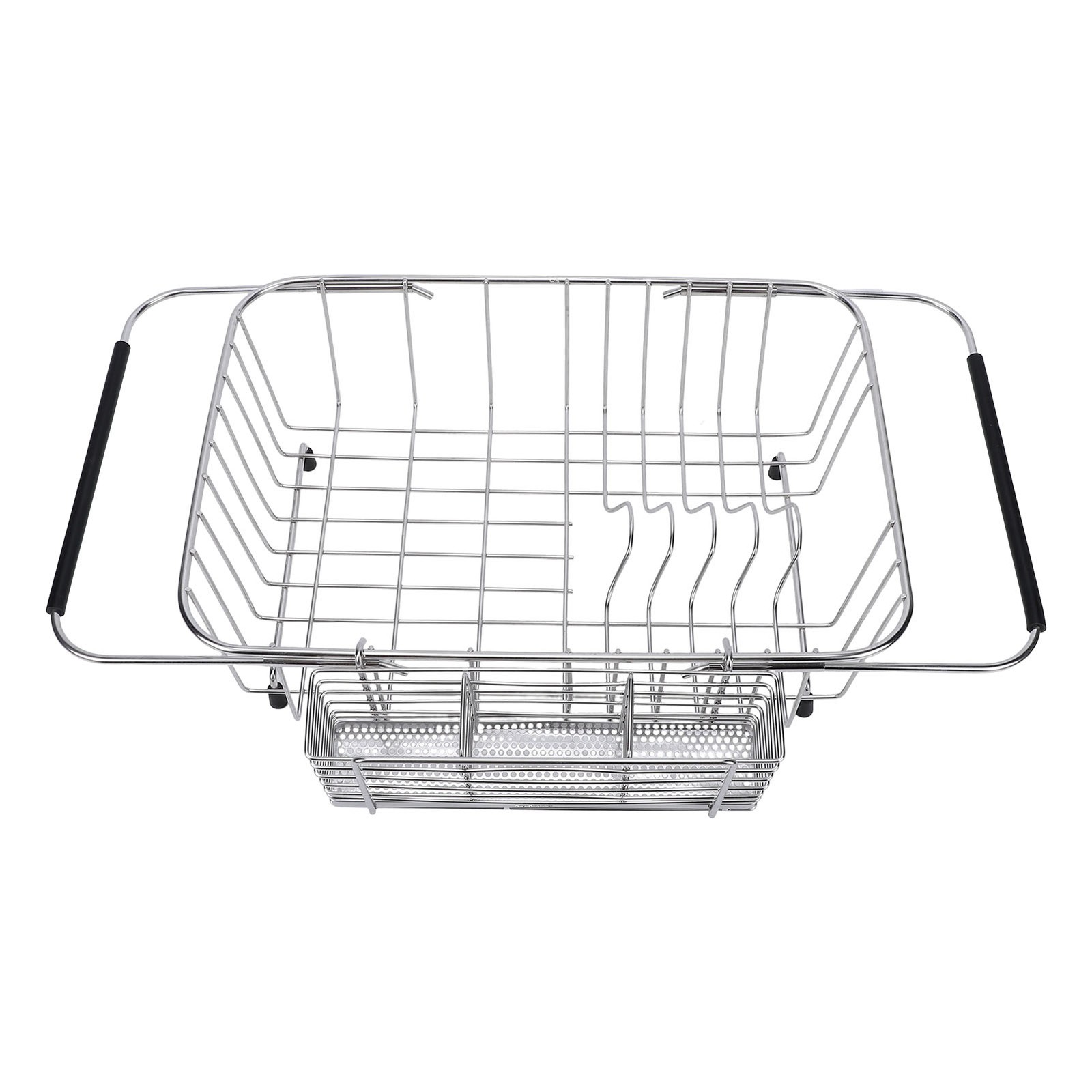 Extendable Dish Drainer Rack Adjustable Stainless Steel Sink Organizer