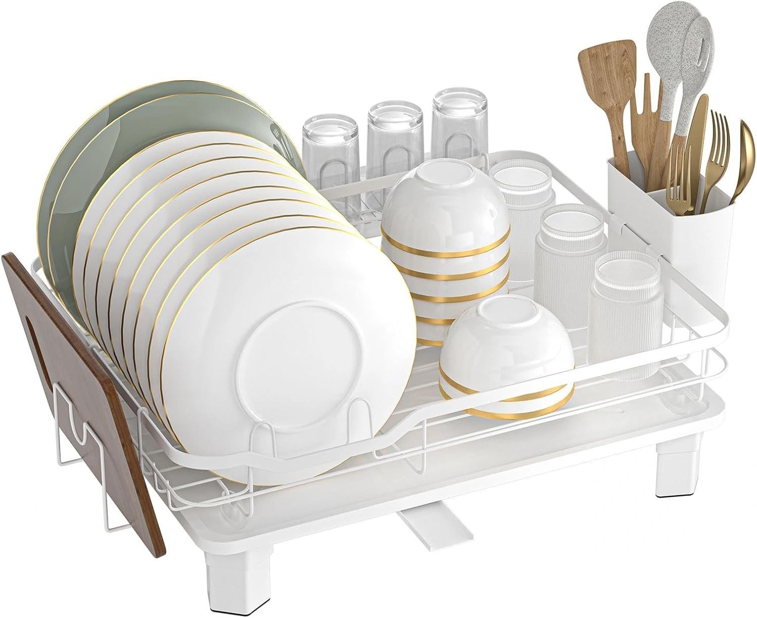 White Dish Drainer Rack, Stainless Steel Rust-Resistant Space Saving Kitchen Dis