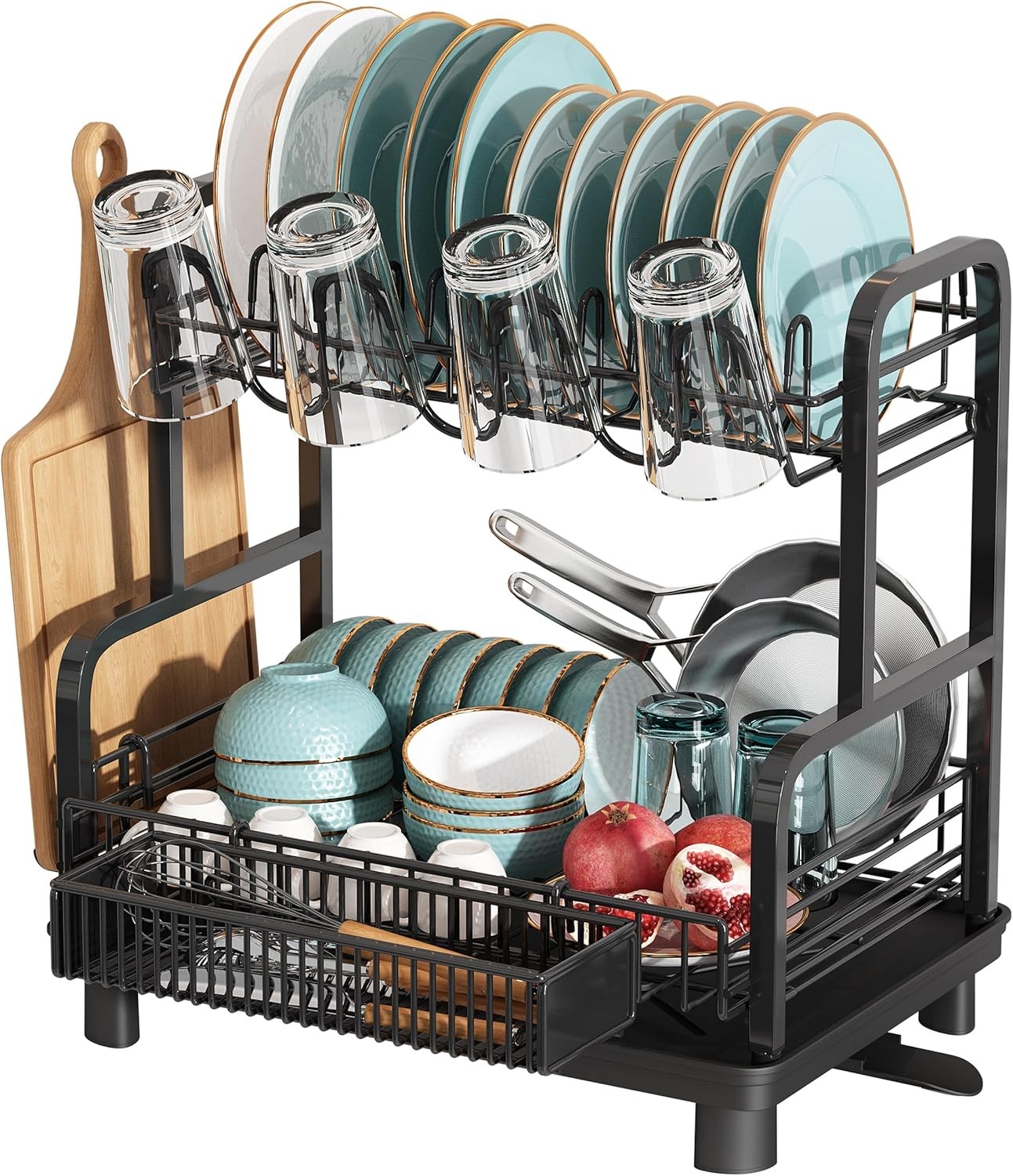2 Tier Dish Drainer Stainless Steel Draining Dish Drainer Multifunctional Black