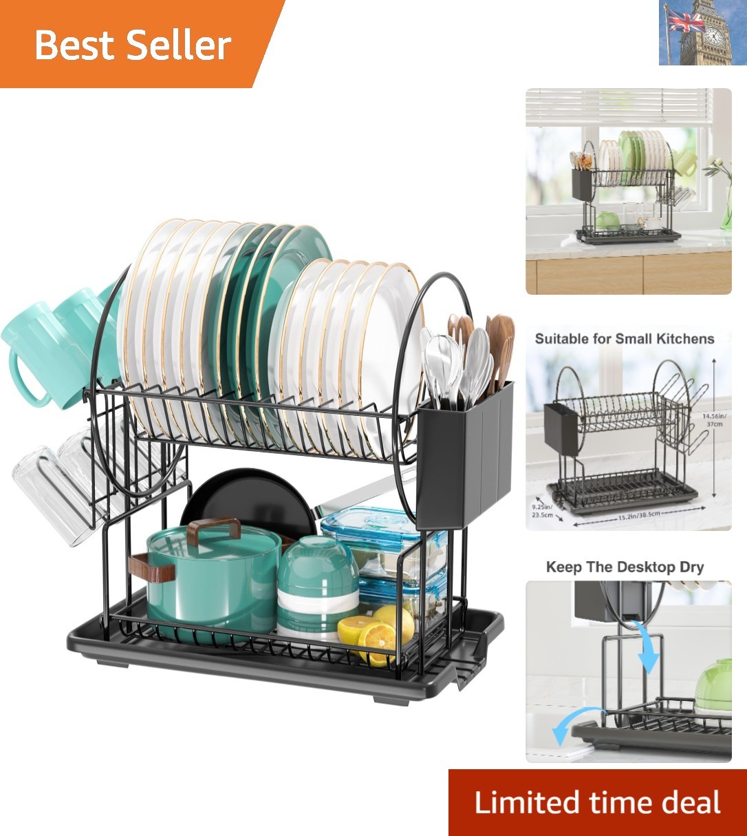 Space Efficient 2-Tier Dish Drainer with Drip Tray - Perfect for Modern Kitchens