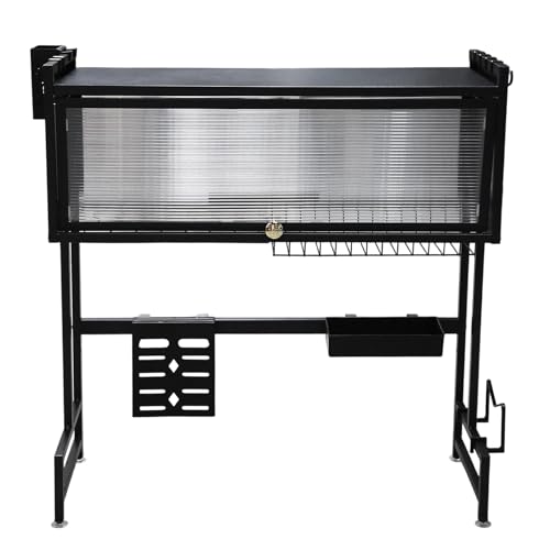 Over The Sink Dish Drainer Drying Rack with Cover - Space-Saving Above Sink Shelf Organiser | Sturdy Kitchen Dish Rack with Drainage Tray | Perfect for Small Kitchen Countertops