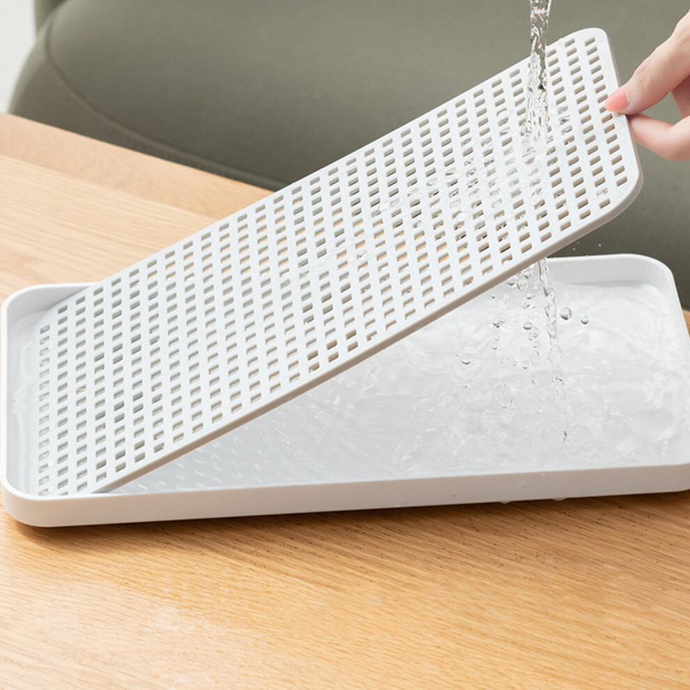 Double Layer Drain Tray Dish Drainer Drying Rack Tea Tray for Cup Bowl Fruit Water Drip Tray Holder Rectangular 31x17.5x2.3cm