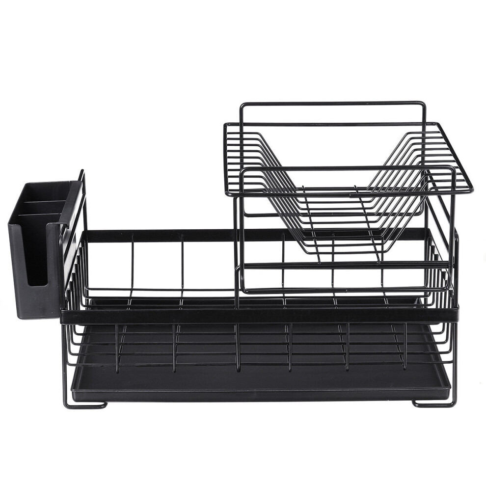 (Black) Metal Multi Layer Dish Rack Drainer Drying Dish Tray Holder Kitchen Organizer Home Kitchener Storage Supplies