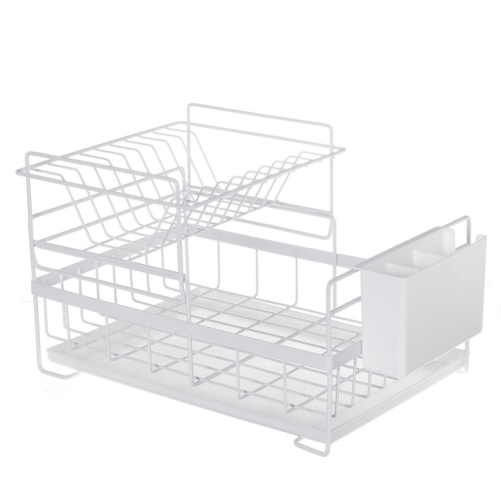 (White) Dish Drying Rack with Tray Drainer Kitchen Organizer Black
