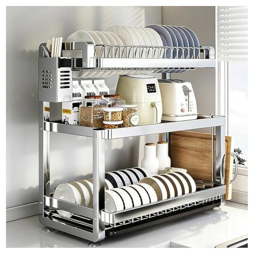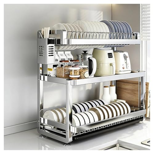 ZGHQHCDRH Drain rack, Dish Rack Kitchen 304 Stainless Steel 2 Layer Drying Tableware Drain Multifunctional Storage Supplies With Drip Tray