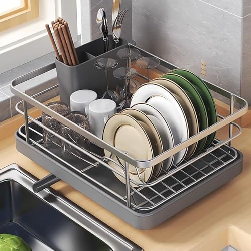 ZGHQHCDRH Drain rack, Dish Drainer Rack Silvery Stainless Alumikitchen Drying Sink Drain Holder Cutlery Storage Plate Glass Organizer Shelf Kitchen/Gray
