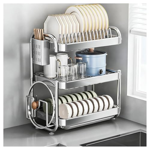 ZGHQHCDRH Drain rack, Dish Rack 304 Stainless Steel Drying Three-layer Drain Kitchen Storage With Tableware Rack/Chopping Board With Drip Tray