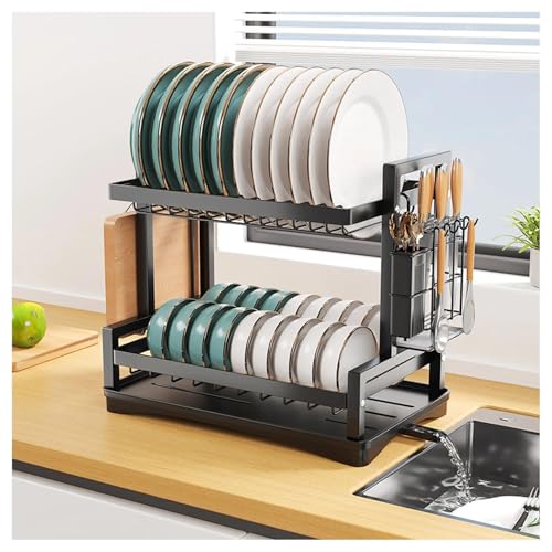 ZGHQHCDRH Drain rack, Dish Rack Stainless Steel 2 Layer Drain Kitchen Drying With Drip Tray