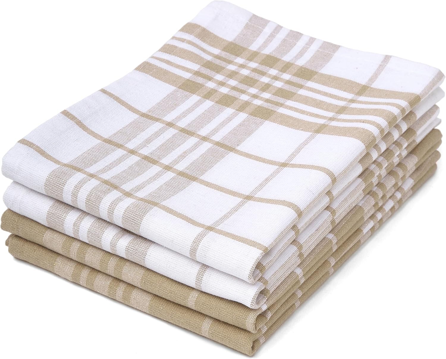 Encasa XO Kitchen Towels and Dish Cloths Sets | Beige Non-Terry Highly Absorbent Cotton Terry Towels | 70x45 cm | Multipurpose for Washing Dishes and