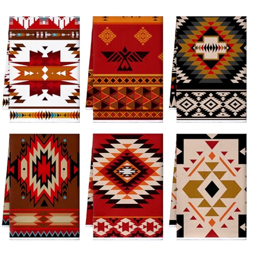 Bencailor 6 Pcs Aztec Kitchen Towels Sets Decorative Dish Towels Absorbent Fast Drying Hand Cloths Hanging Reusable Cleaning Dishcloths for Cooking Housewarming